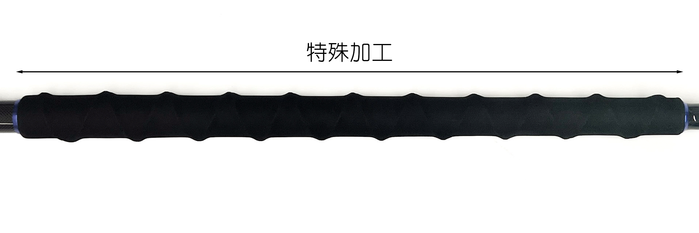 グリップ部分に耐磨耗性に優れた高強度EVA+濡れた状態でも滑りを軽減する特殊加工グリップを採用しており、魚とのファイトの際にフォアグリップを握りやすくなっております。